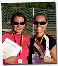 Nun konnten alle ganz entspannt auf das Finale warten. Es wurde heiß diskutiert, wem nun die Favoritenrolle zustünde, doch man kam zu keinem Entschluss und somit war klar, dass es dieses Finale in sich haben würde. Nach relativ deutlichem ersten Satz hatte Niederbayern die Nase vorn und Anna/Diana schienen die sicheren Siegerinnen zu sein. Aber Fehlanzeige: durch das ständige Anpeitschen der kanadischen Misi kamen sowohl ihre Partnerin Lucie als auch sie selbst ins Spiel zurück und kämpften ihre Kontrahenten in einem mega spannenden Dreisatzmatch doch noch nieder. Der Sieg ging somit zurecht an Lucie/Misi aus Kanada vor dem Niederbayerischen Duo Anna/Diana. Herzlichen Glückwunsch! |